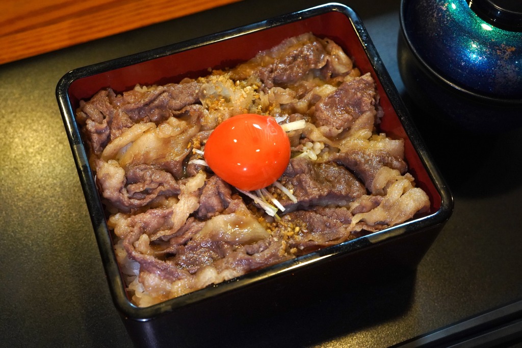 当店ではそんな最高品質の神戸ビーフを、美しい漆塗りの器にたっぷりと盛り付けた牛丼にして提供しています。