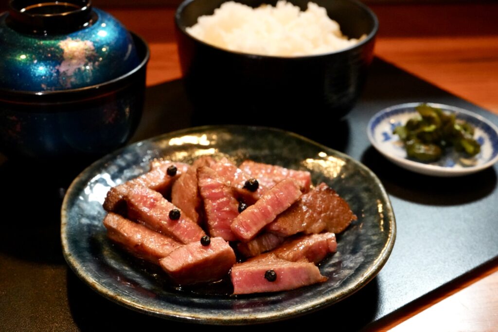 神戸牛丼の上に和牛タンの姿焼きを丸々盛り付けます(画像はMサイズ)。