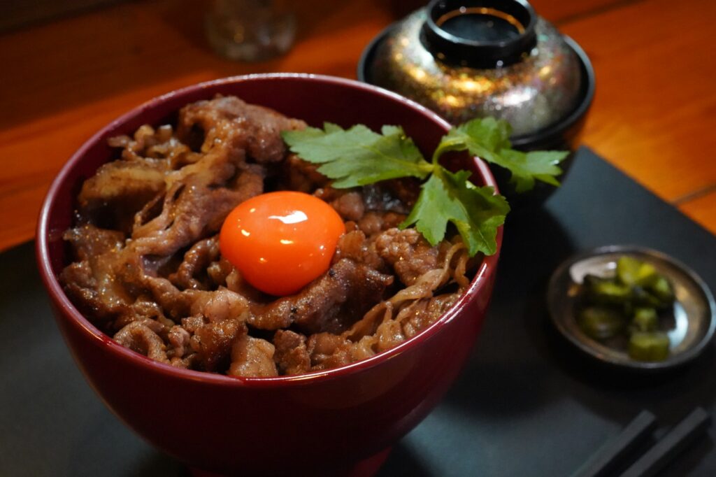 神戸ビーフ丼に、松阪牛のすき焼き肉を豪快にトッピングした至高の牛丼(画像はLサイズ)
